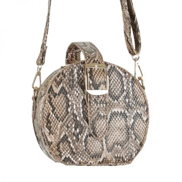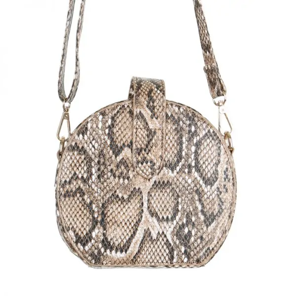 Stijlvolle ronde tas met een nep-slangenprint. Deze hoogwaardige tas kan als handtas worden gedragen, maar wordt ook geleverd met een schouderriem!